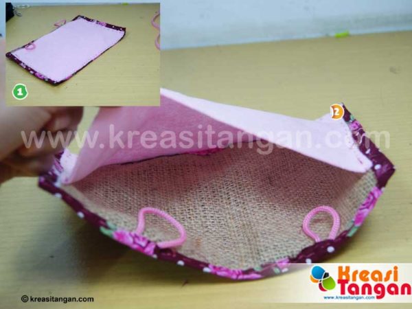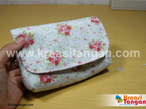 - Balik kembali dompet tersebut sehingga posisi kain perca ada di luar;